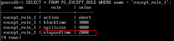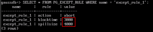 通过PG_EXCEPT_RULE系统表,可以查看异常规则已修改成功。