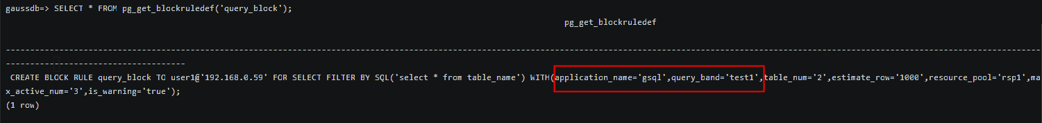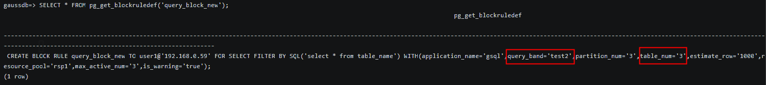 通过视图pg_get_blockruledef查询修改后的过滤规则。