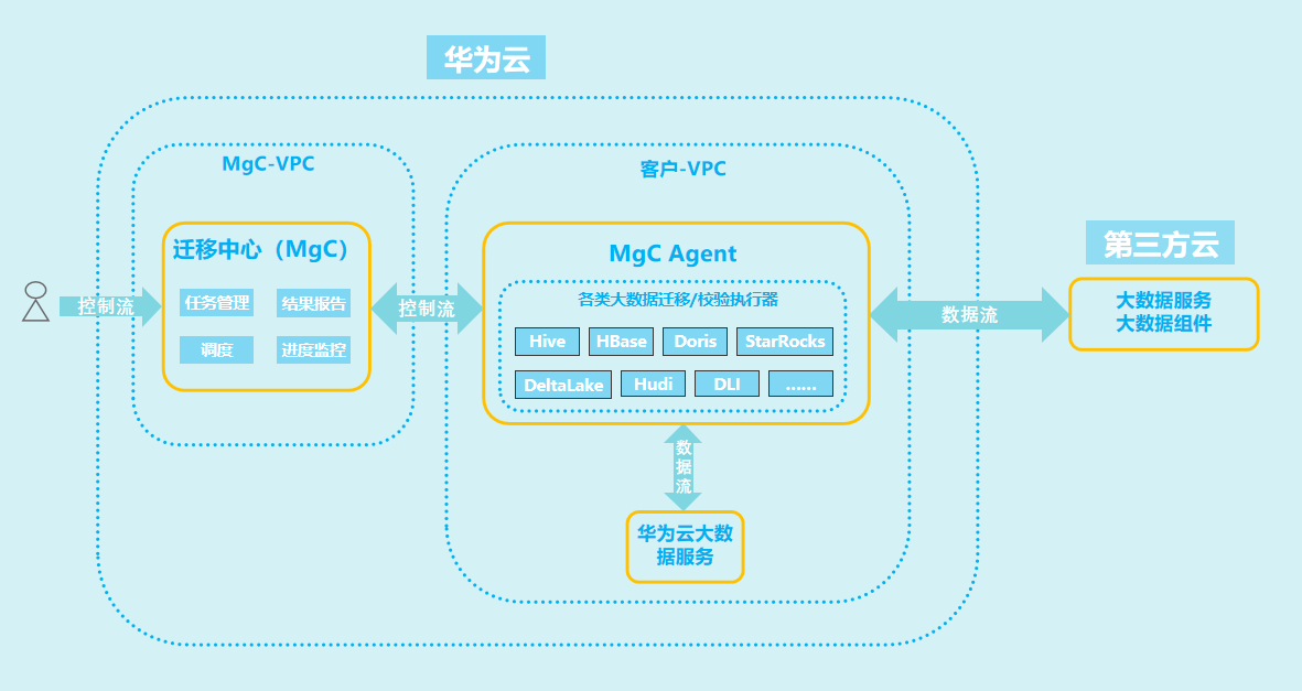 MgC Agent作为MgC部署在客户云环境网络边缘的工具,其主要作用是执行数据采集和数据迁移。在特定的迁移场景中,这些操作需要在客户自己的云网络环境中执行,MgC Agent扮演着连接MgC和客户网络的桥梁角色,确保数据迁移过程的顺畅和安全。