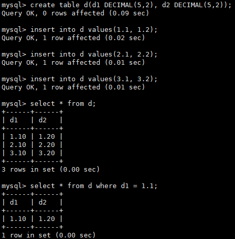 MySQL中涉及浮点数的类型有float和double。如下示例中遇到的问题: