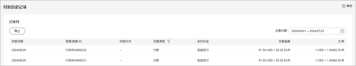 单击页面左上方的“导出”,可以在“费用中心 > 导出记录”中获取导出内容。