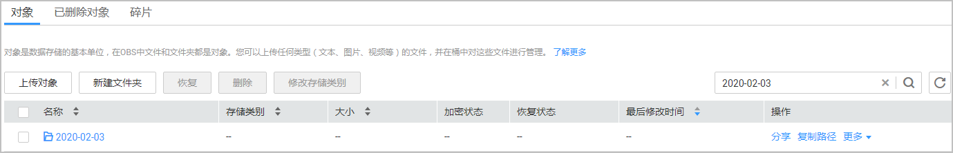 - 客户从对象存储服务中选中对应的日期文件夹。
