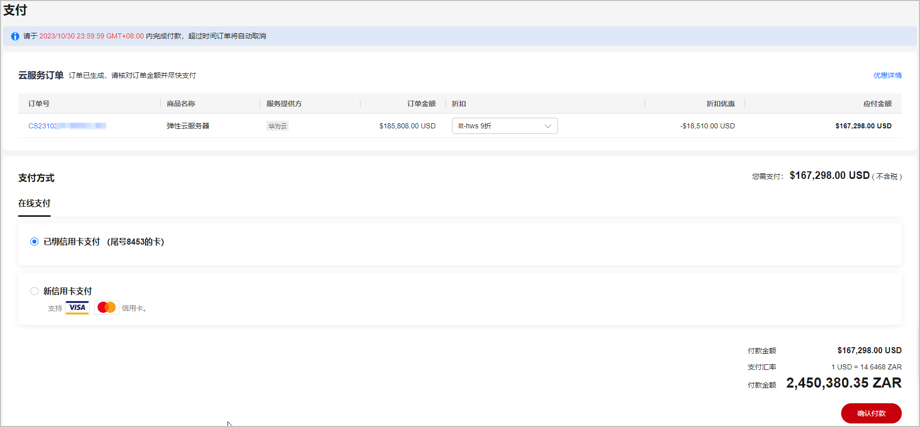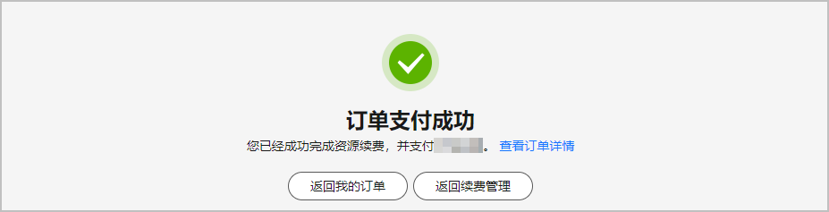 - 支付成功后即可完成续费。可以单击“查看订单详情”查看订单。