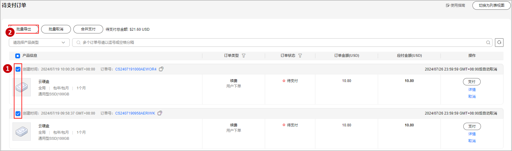 支持客户批量导出待支付订单,用于向公司财务申请资金款项。