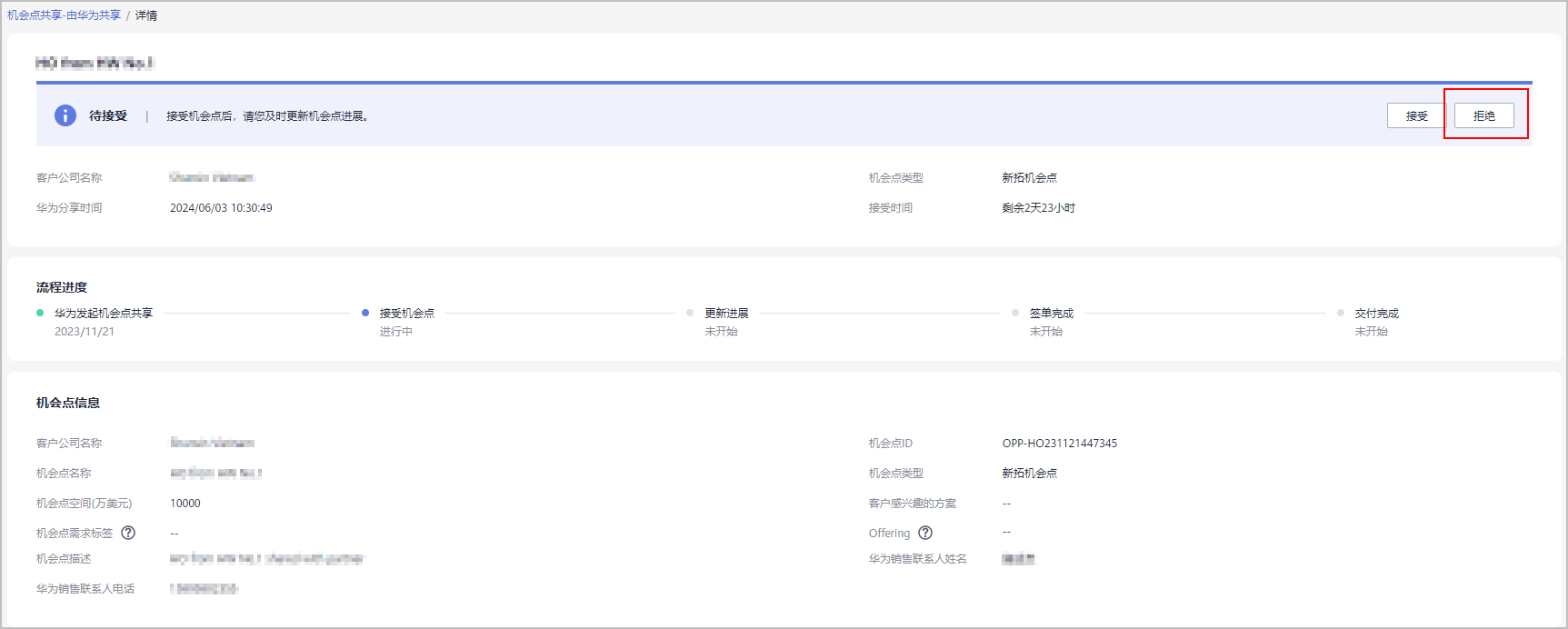 - 伙伴若超过三个工作日未接受机会点,系统将自动拒绝机会点。
