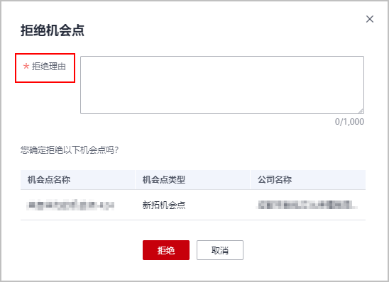 - 伙伴若拒绝机会点,请写明拒绝理由。