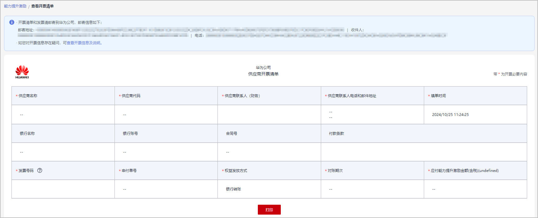 伙伴激励申请审核通过后,按开票清单开票并邮寄给华为公司。