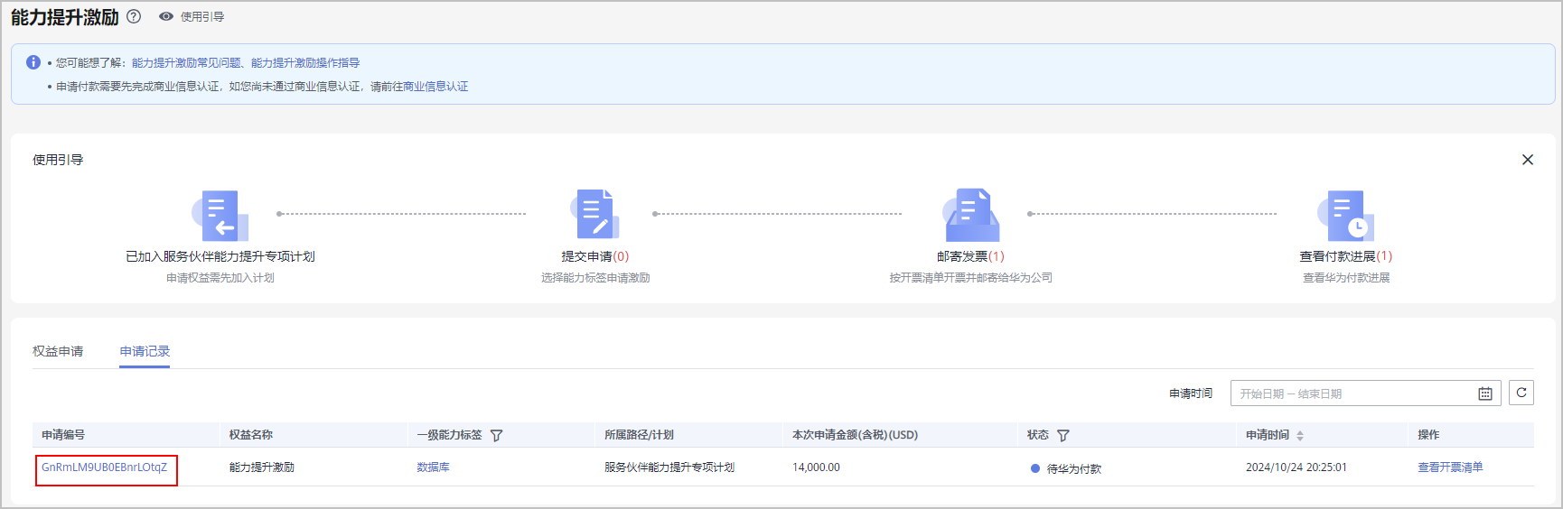 伙伴向华为公司邮寄发票后,可在伙伴中心查看华为付款进展。