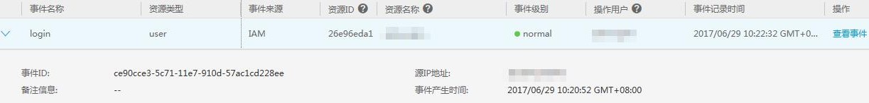 - 在需要查看的记录右侧,单击“查看事件”,弹窗中显示了该操作事件结构的详细信息。