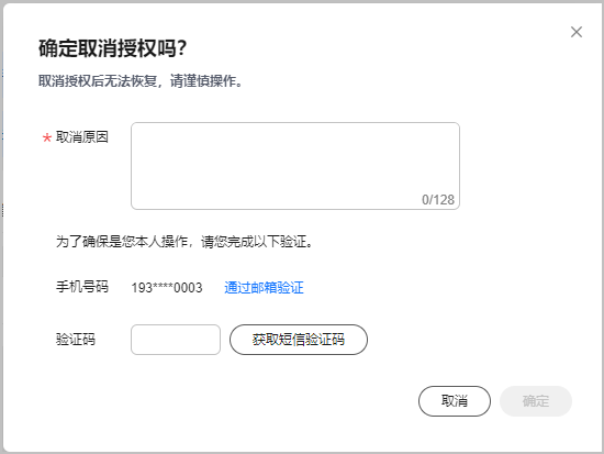 - 输入“取消原因”和验证码,可以取消合作伙伴代下单授权。