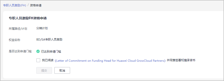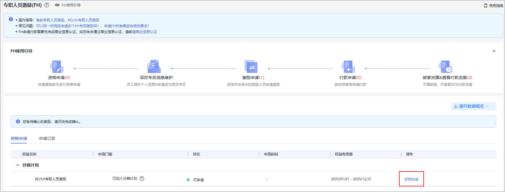 达到门槛的合作伙伴在申请激励前先进行资格申请,签署FH协议。
