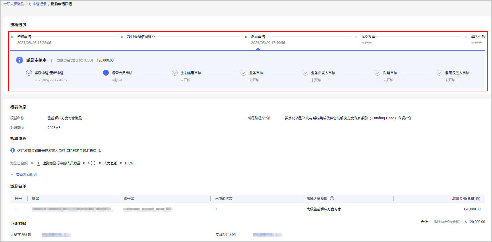 - 申请激励时,若第1次选择了“资深售前解决方案专家”,第2次申请时激励人员类型只可以选择“资深售前解决方案专家”。