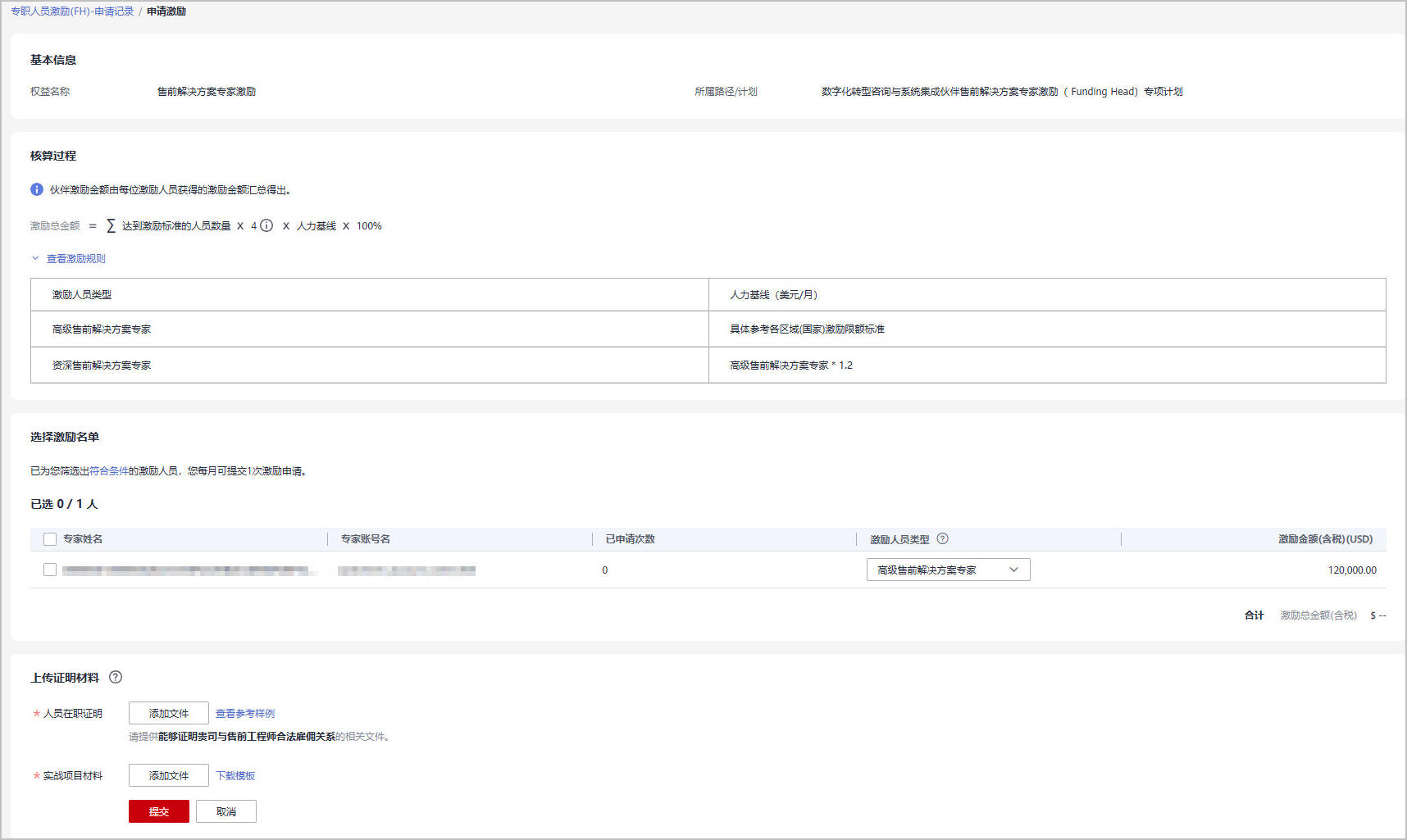 - 申请激励时,若第1次选择了“高级售前解决方案专家”,第2次申请时激励人员类型选择不做限制;