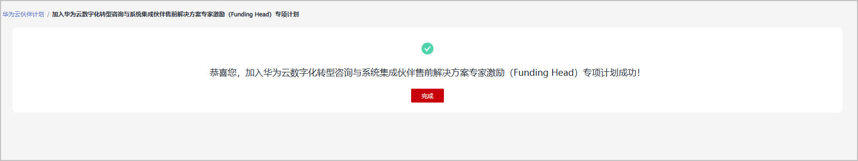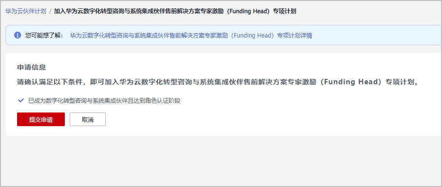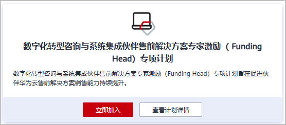 - 选择“数字化转型咨询与系统集成伙伴售前解决方案专家激励(Funding Head)专项计划”,单击“立即加入”。