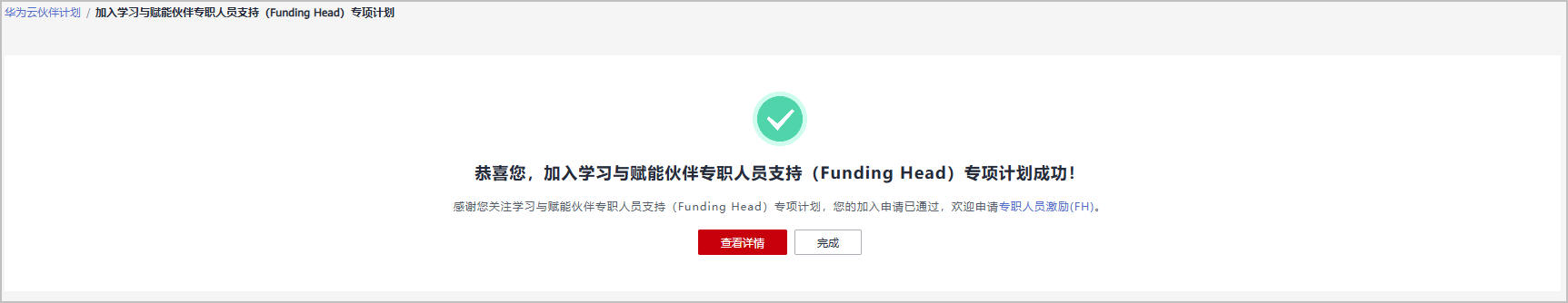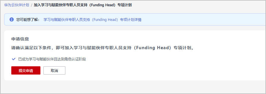- 选择“学习与赋能伙伴专职人员支持(Funding Head)专项计划”,单击“立即加入”。