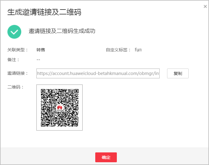 客户收到邀请后,单击邀请链接或者扫描二维码进行注册和关联,具体操作请参见客户点击邀请链接关联伙伴操作指导。