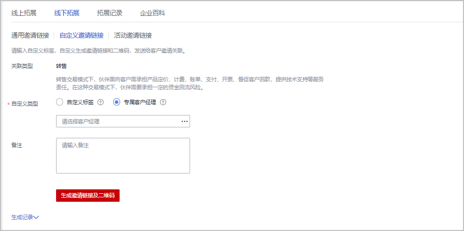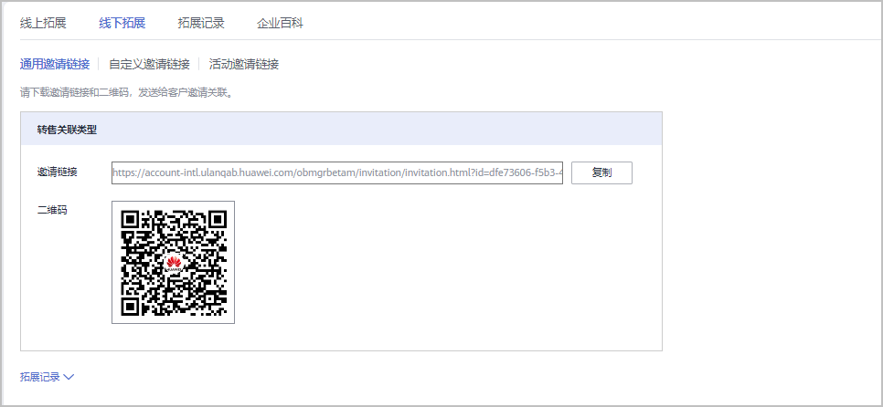 - 伙伴不需要给客户生成自定义标签时,可以使用通用邀请链接及二维码。