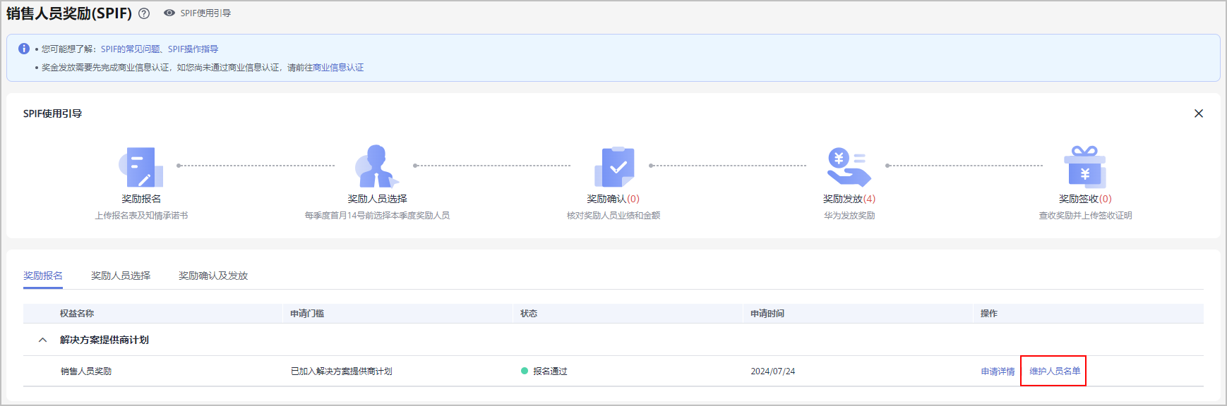 奖励报名通过后,伙伴需按照报名表线上维护一份人员名单,用于后续每个季度的奖励申请。