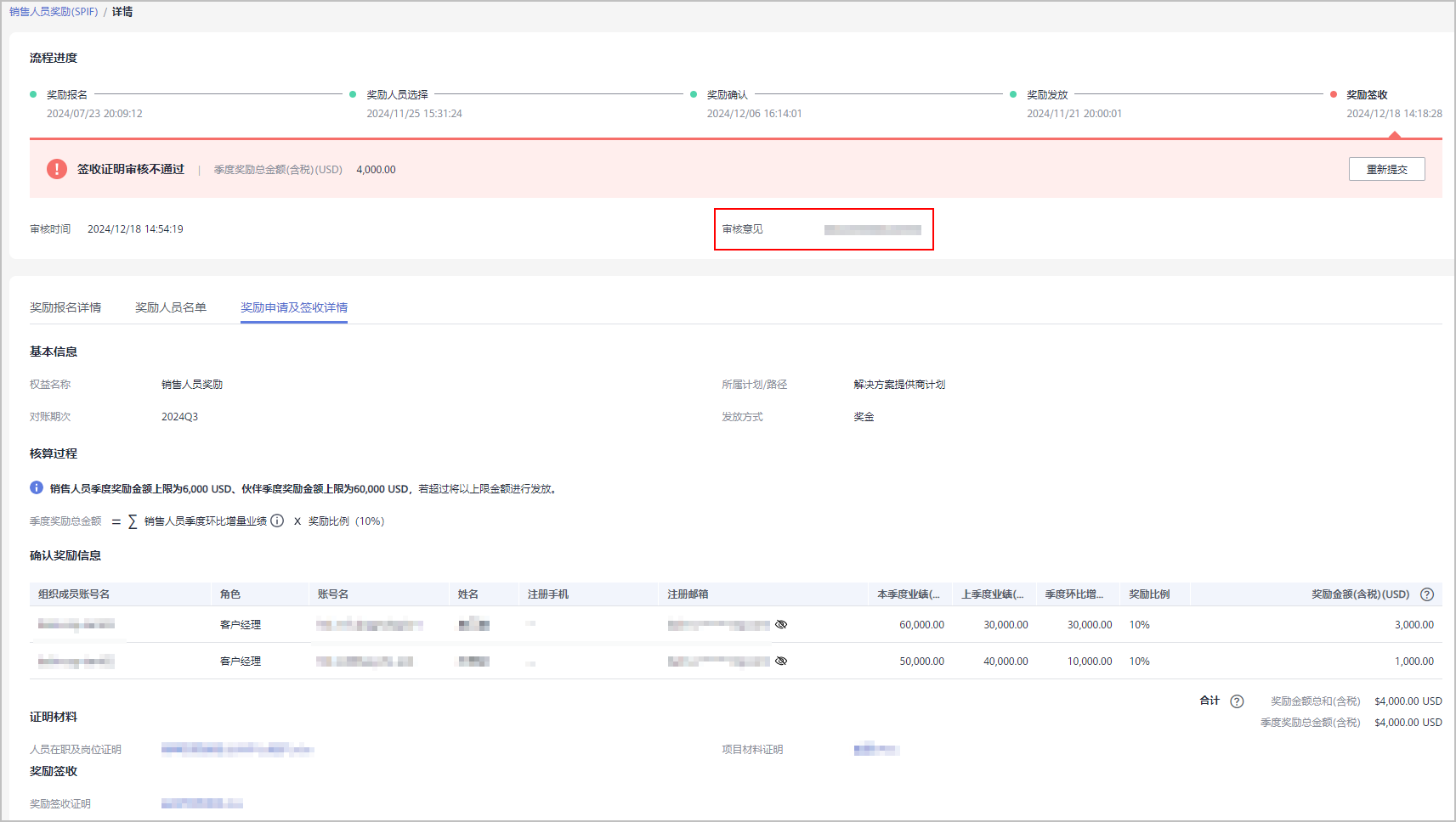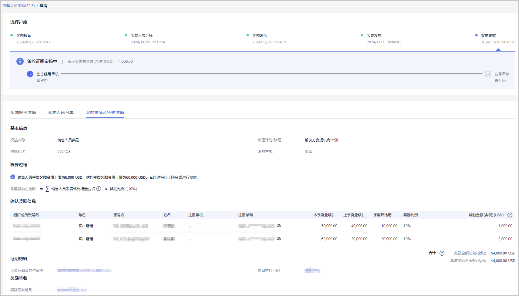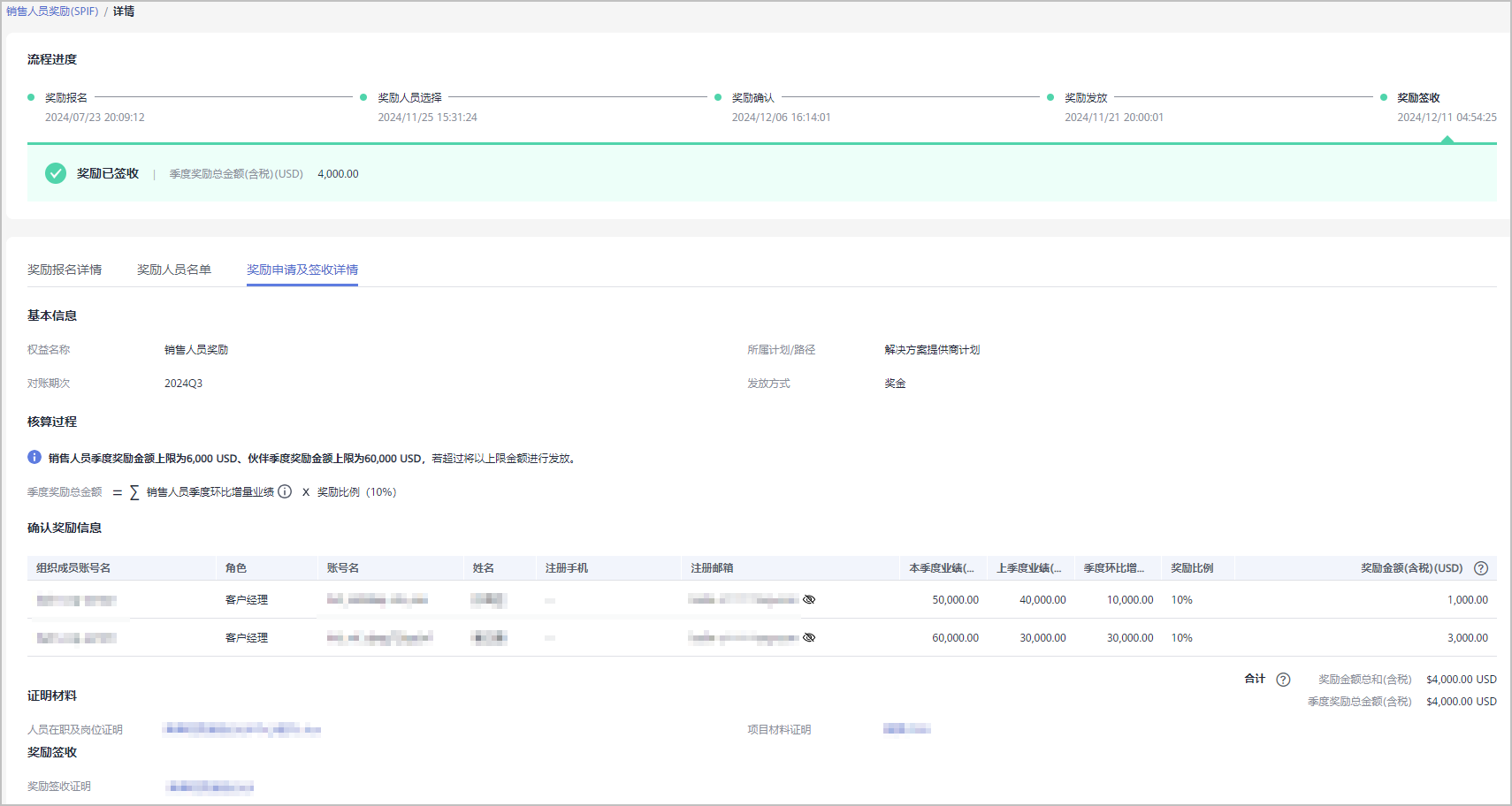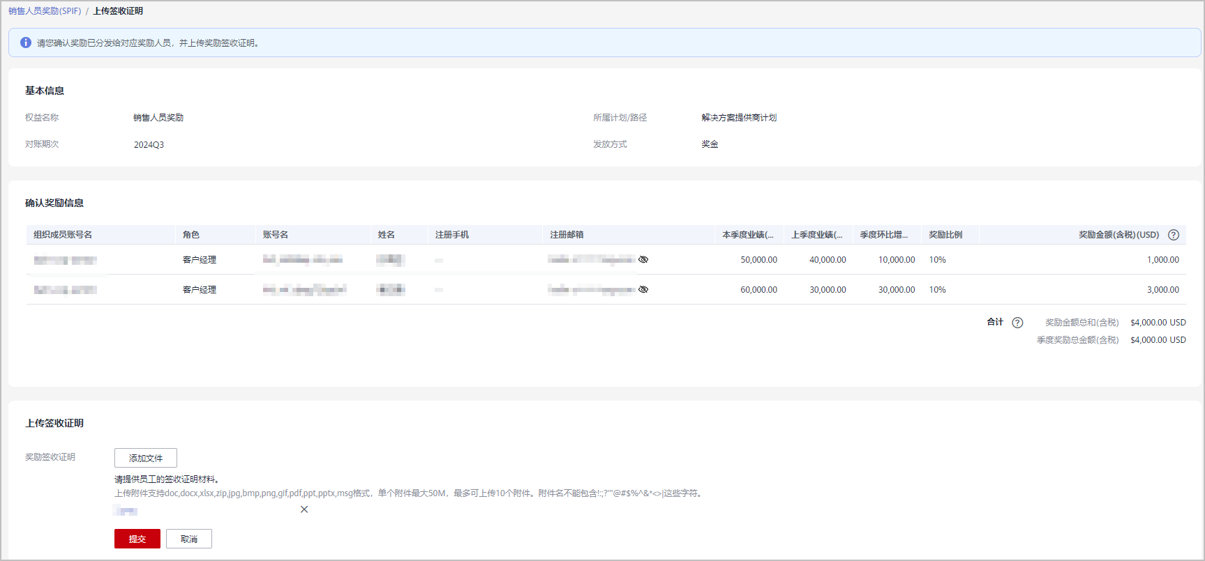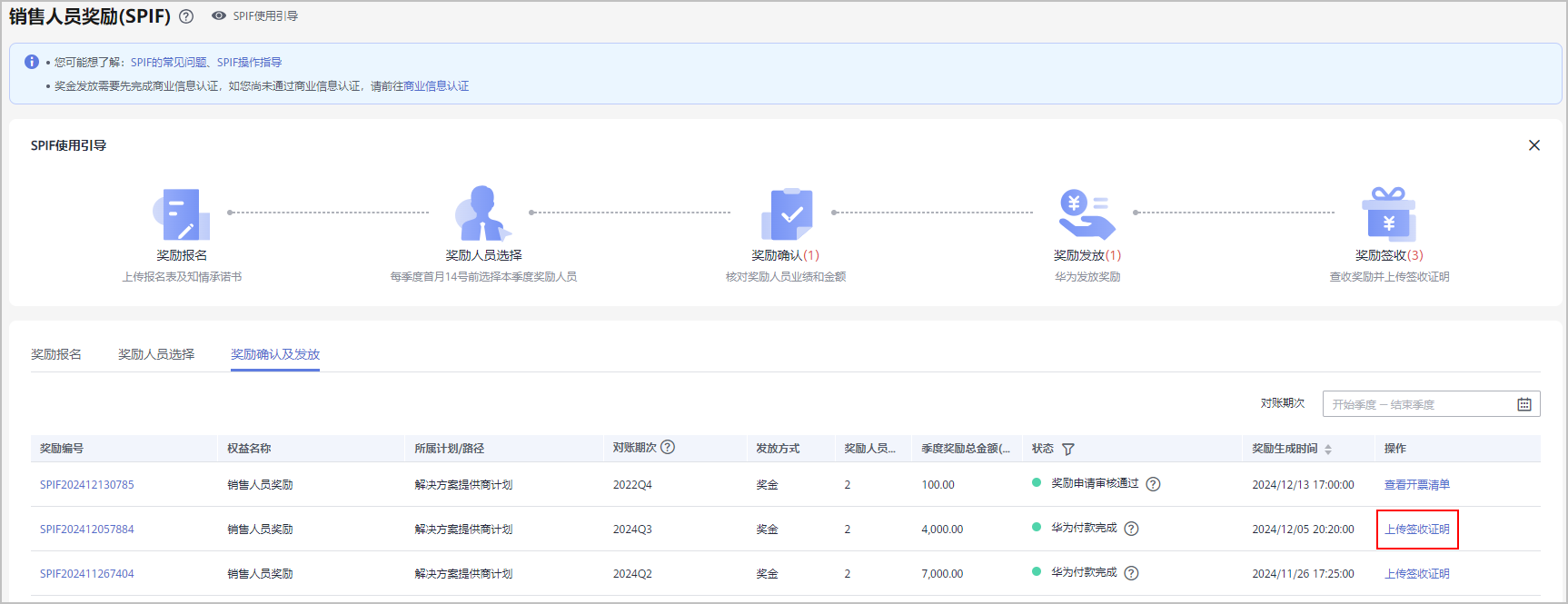 华为发放奖励后,伙伴需要确认奖励已发放到对应奖励人员并上传员工的奖励签收证明。