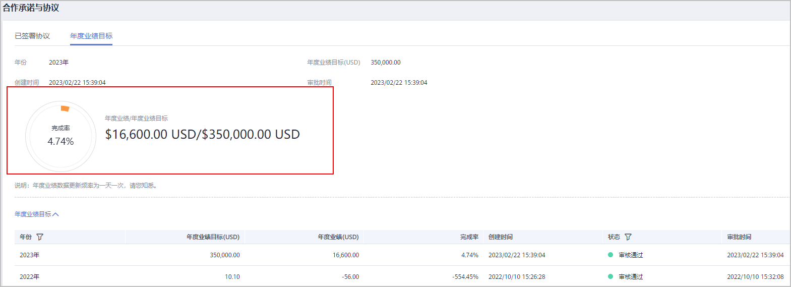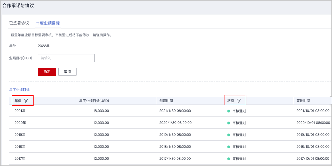 - 设置年度业绩目标需要审核,审核通过后将不能修改,请谨慎操作。