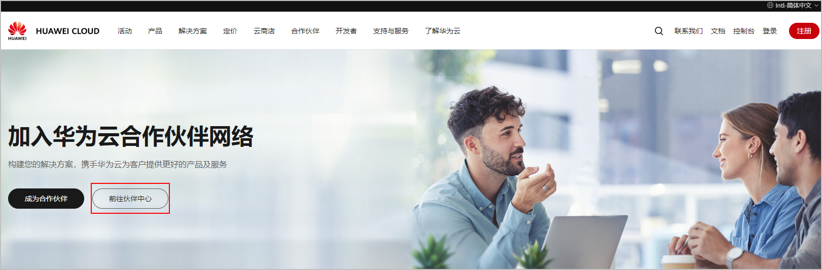- 在加入华为云合作伙伴网络页面,单击“前往伙伴中心”。