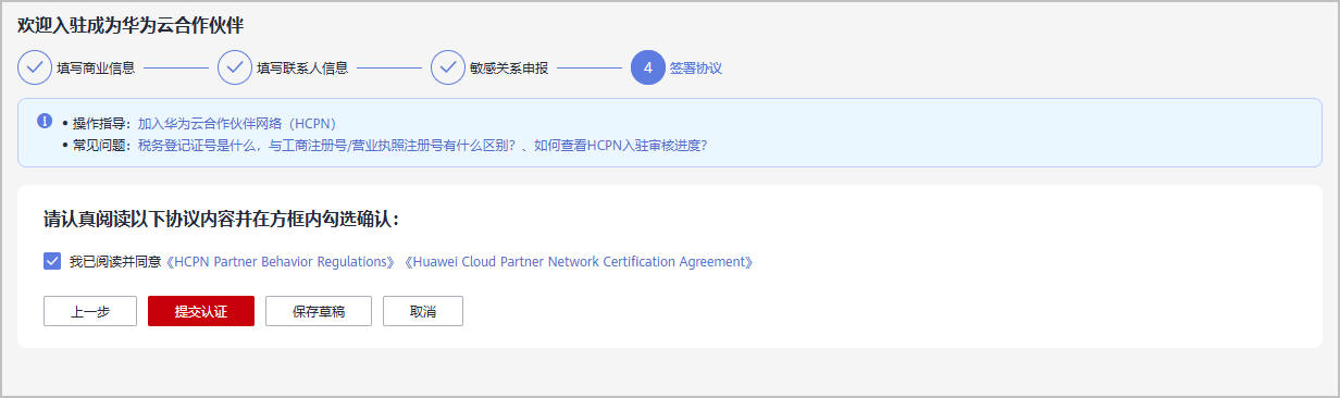 - 成功入驻华为云合作伙伴体系后不支持退出HCPN。