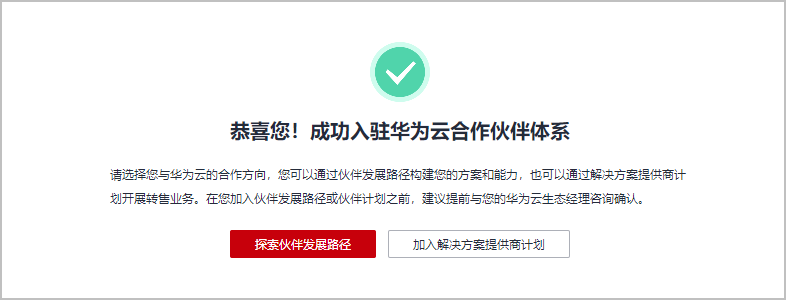 - 系统提示您成功入驻华为云合作伙伴。