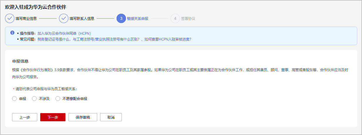 - 填写敏感关系申报信息,单击“下一步”。