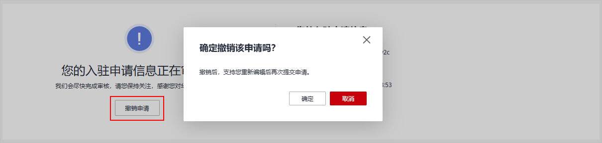 - 若您需要修改已提交的认证信息,请在华为方审核前,撤销申请并重新编辑。