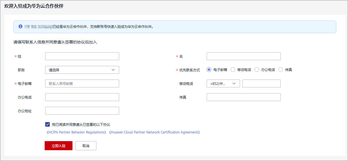 加入华为云合作伙伴网络(HCPN)