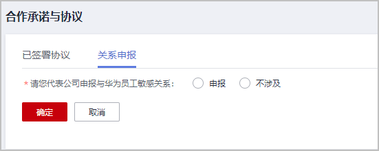 - 申报贵公司与华为员工的敏感关系,单击“确定”。