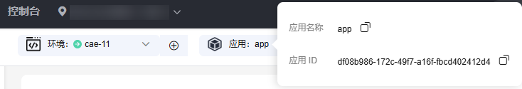 当鼠标悬停在“应用”时,显示应用名称和应用ID。 |