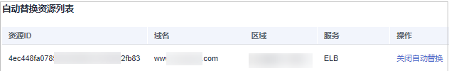 - 自动替换资源列表中出现该域名资源,表示开启到期自动替换成功。