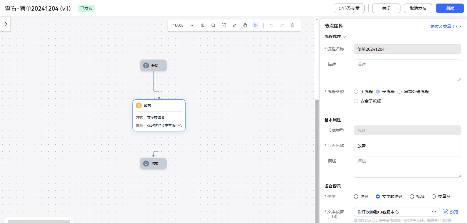 流程已绑定智能机器人。绑定智能机器人步骤可参考配置机器人章节。