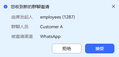 - 单击确定,即可发送群聊邀请,等待被邀请座席响应。