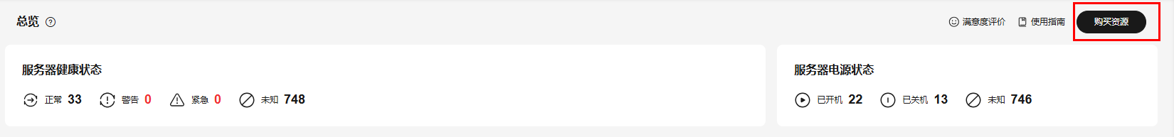 - 在“总览”页右上角,单击“购买资源”,进入“购买云化数据中心资源”页面。