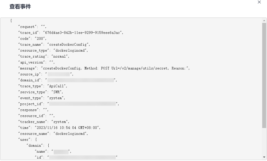 - 关于事件结构的关键字段详解,请参见《云审计服务用户指南》中的事件结构和事件样例。