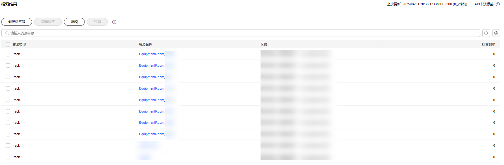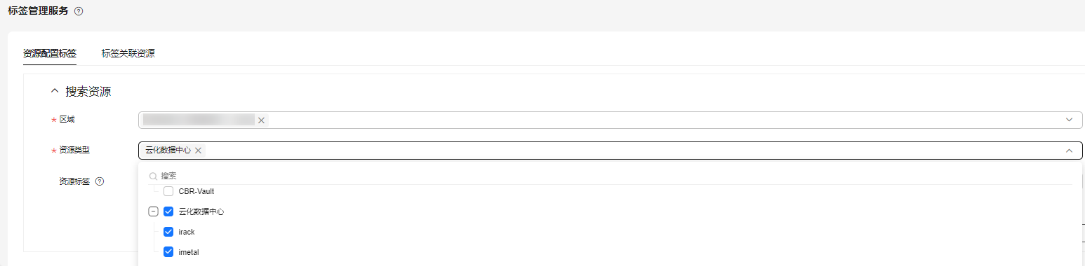 - 云化数据中心:搜索iRack机柜和iMetal服务器两类资源的标签。