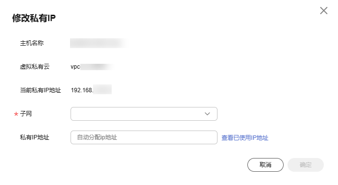 - 单击“确定”,完成私网IP地址的修改。