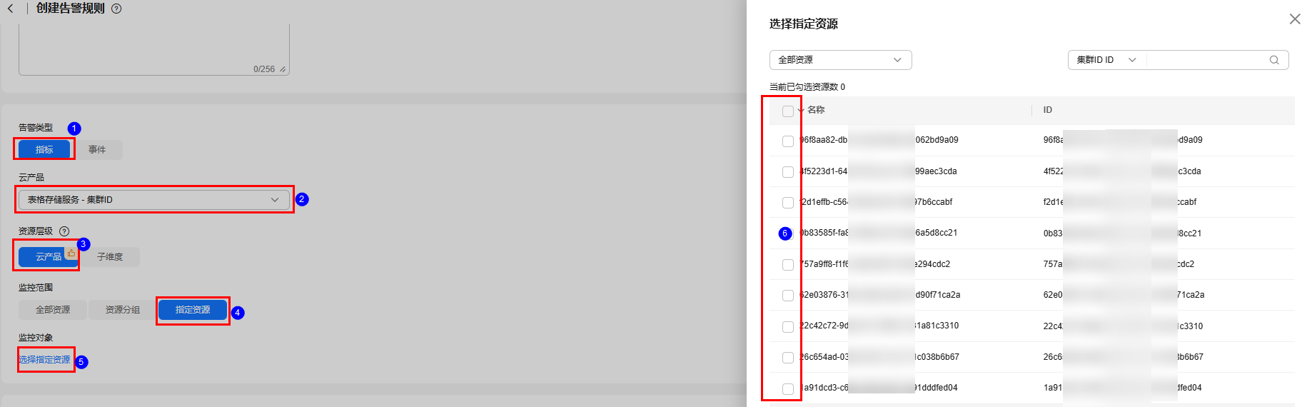 - 子维度 > 集群ID-计算单元:以集群节点为维度指定告警规则。