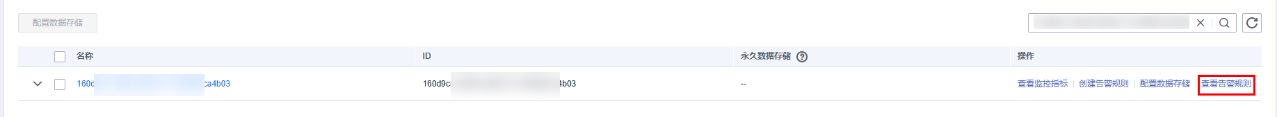 - 在告警规则列表,搜索“资源类型”为“表格存储服务”,查看是否有满足要求的告警规则。