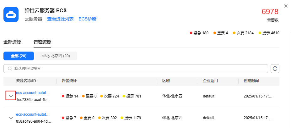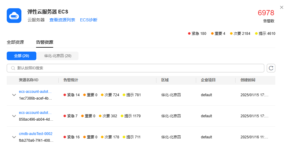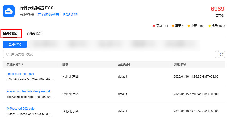 图7 告警处理 - 选择“全部资源”页签,查看该资源类型下的所有资源。