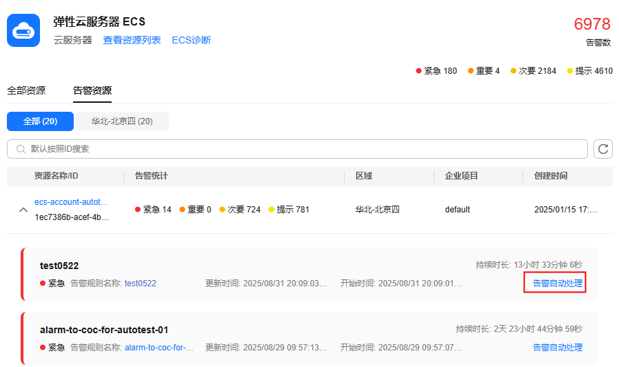 图6 查看告警规则 - 选择需要查看的告警,单击“告警自动处理”。