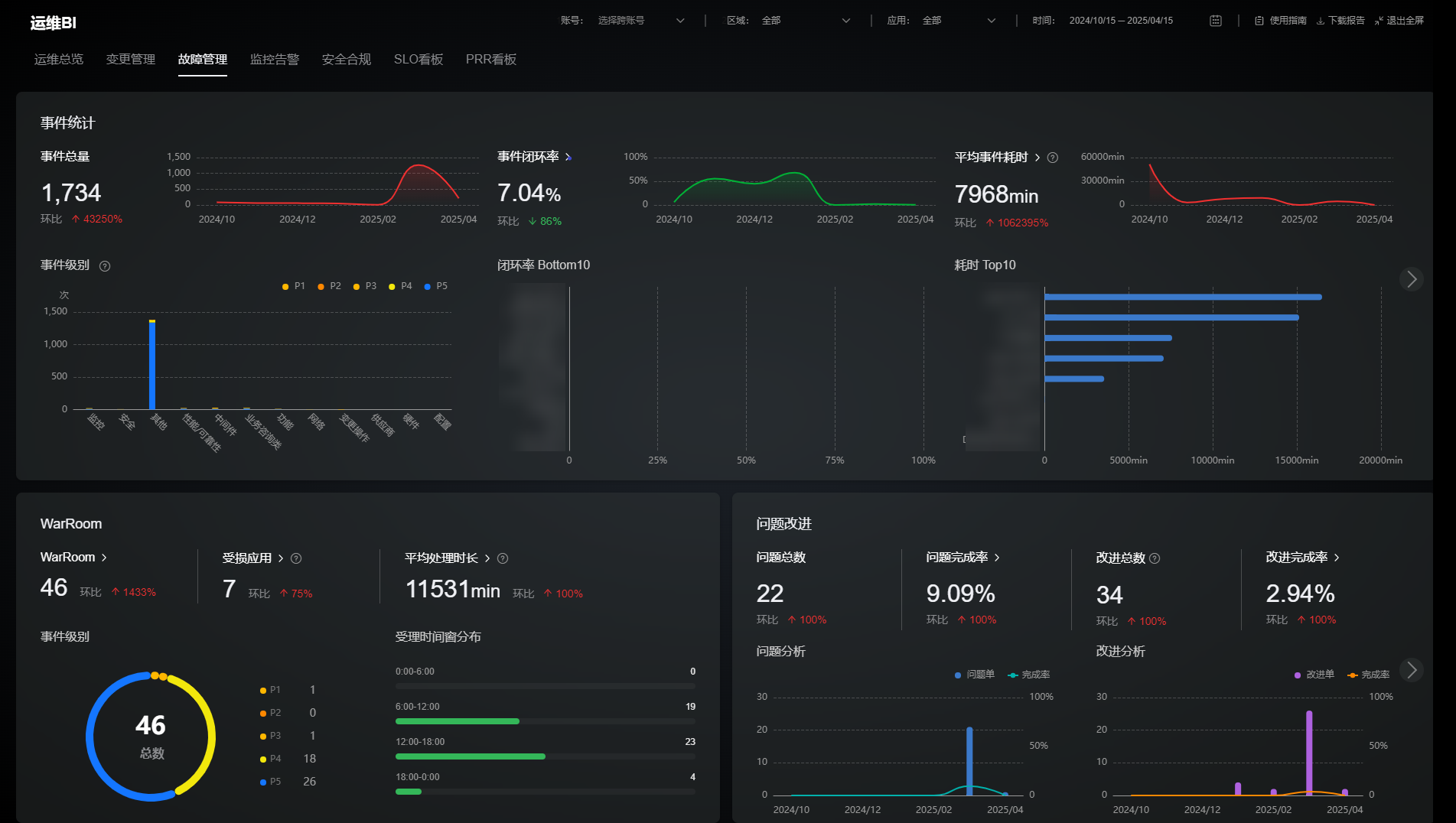 - 面向不同角色运维人员的专属运维BI看板,辅助运维优化改进和洞察决策。