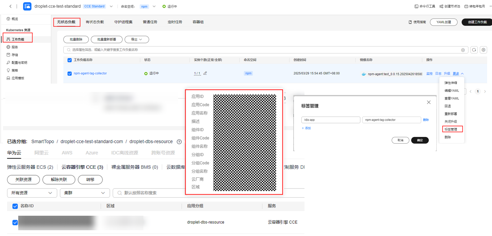 - 如果需要展示CCE集群中的负载,pod信息,需要在CCE中对负载进行标签配置(每个分组只能添加一个CCE集群资源,否则不展示负载等信息)。