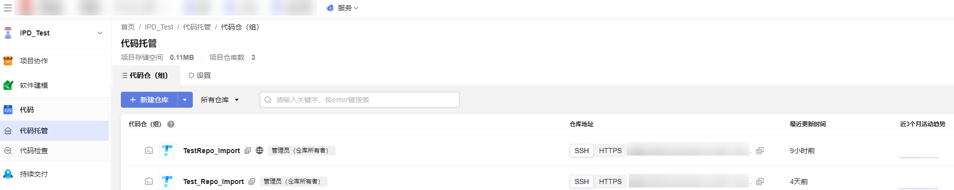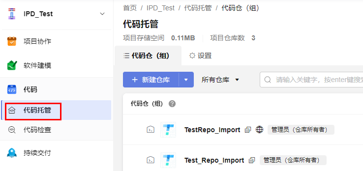 - 代码托管服务查看代码仓库列表页有两种访问方式:查看当前用户参与的仓库列表页和查看指定项目下的列表页。