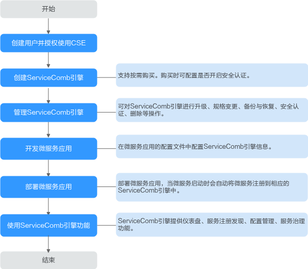 - 参考管理ServiceComb引擎对ServiceComb引擎进行升级、规格变更、备份与恢复、安全认证和删除等操作。