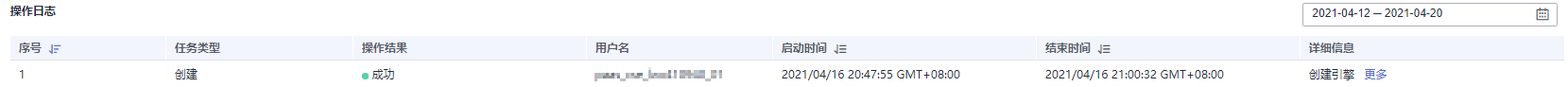 ,可以选择查看某时间区间的操作日志。 - 单击日志列表中指定操作日志“详细信息”列的“更多”,可查看该操作日志的详细信息。