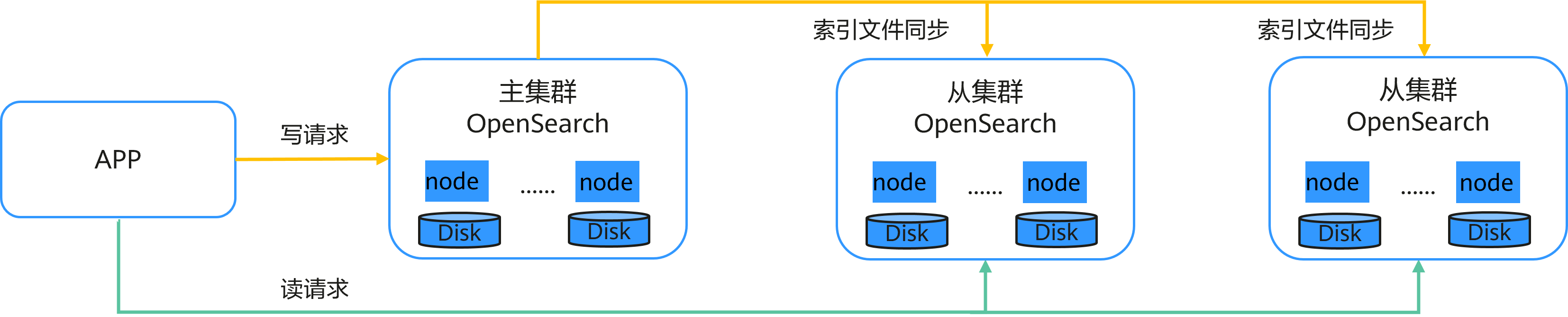 OpenSearch读写分离架构通过主集群和从集群的协作实现。具备如下特点与优势: