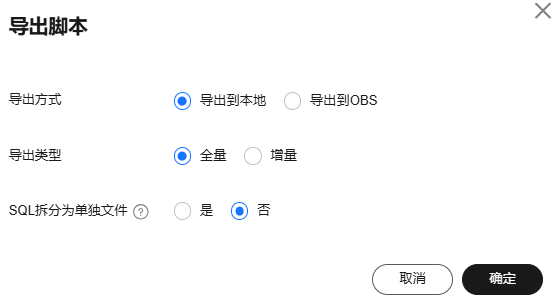 - 在弹出的“导出脚本”界面,选择需要导出的脚本的类型,单击“确定”。
